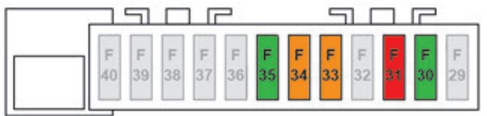 4. Identificar o fusível avariado consultando as tabelas de atribuição e os diagramas apresentados nas páginas seguintes.