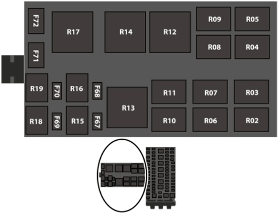 Diagramas de fusíveis e relés, localização das caixas de fusíveis para Ford Transit (2014, 2015, 2016, 2017, 2018, 2019).